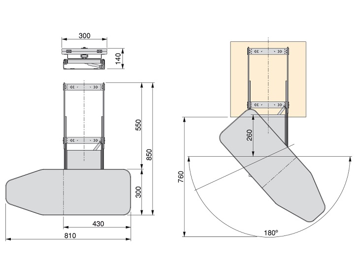 180º si are un sistem de blocare pentru a o fixa in orice directie astfel incat sa puteti calca hainele cu usurinta.
