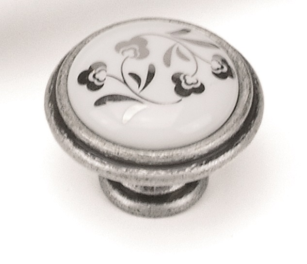 Buton portelan mobila P88.00.H4.E8G flori argintii