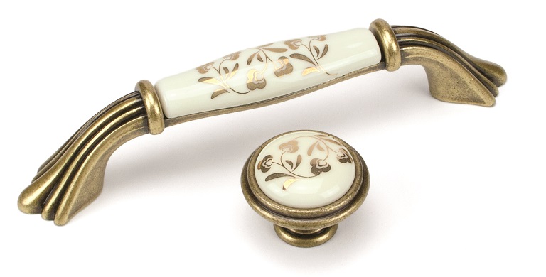 Buton portelan mobila P88.01.H3.D1G flori aurii