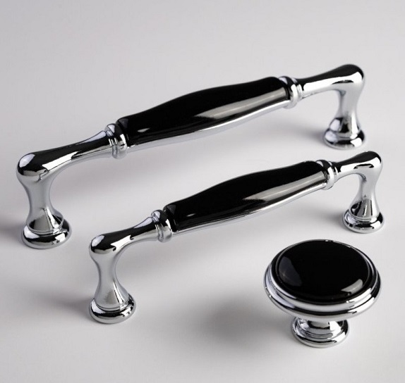 Buton portelan P77.07.00.CLG negru crom lucios