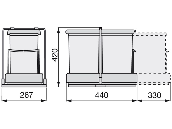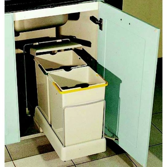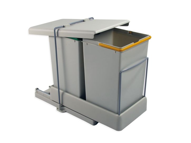 Cos gunoi cu doua compartimente (cate 14L fiecare) pentru montare in corp de 400mm. Deschiderea usii extrage automat cosul de gunoi si deschide capacul acestuia.