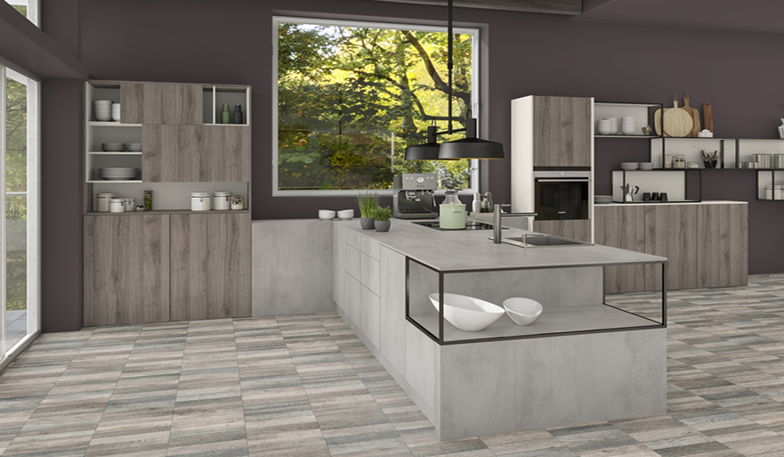 Stejar Sherman gri, în structura ST32 Feelwood Vintage, ilustrează o reproducere de stejar rustic. Datorită nuanței de gri, decorul poate fi combinat cu ușurință cu o gamă largă de decoruri uni, de la neutre la colorate.
