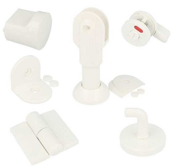 Doua balamale, un cuier, 2 picioare, o incuietoare, un maner, 12 placute L de prindere.